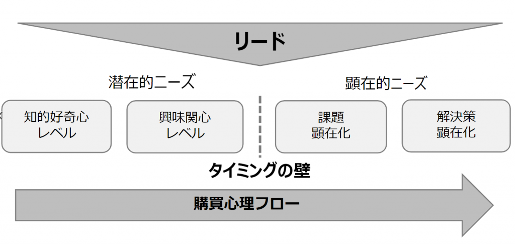 各ニーズ「決算タイミング」「課題が顕在化したタイミング」「人事異動」「予算が余ったタイミング」でいかに企業やサービスを想起してもらえるかが重要です。