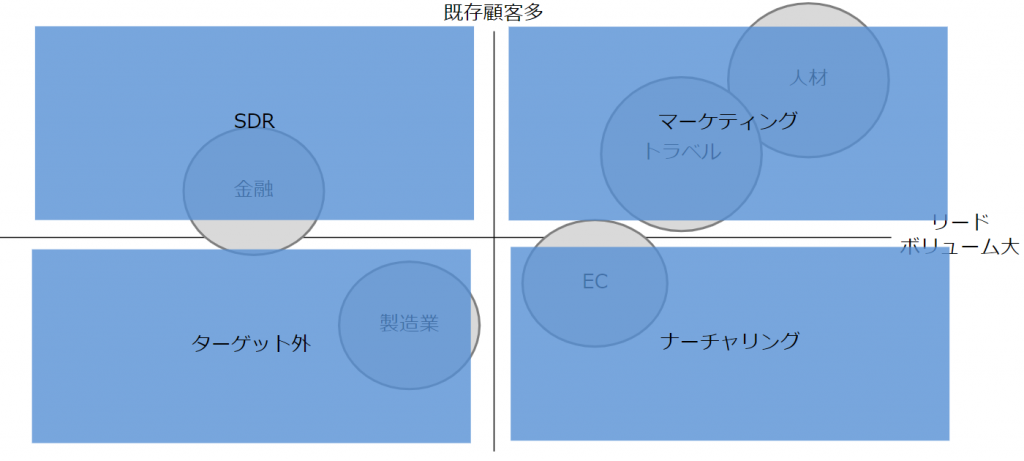 弊社はリード獲得までのナーチャリングを下図のように4つに切り分けて考えます。