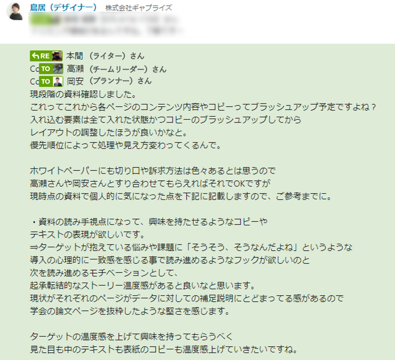 職種に関係なくチャットで提案ができる環境であることは、成果を出す体制には欠かせません。
