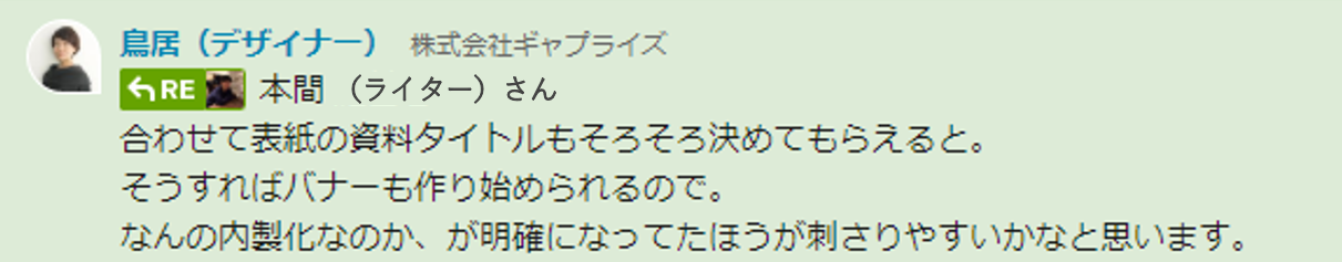 週に1回、チームリーダーから下図のようにバナー作成の依頼がリマインドされました。