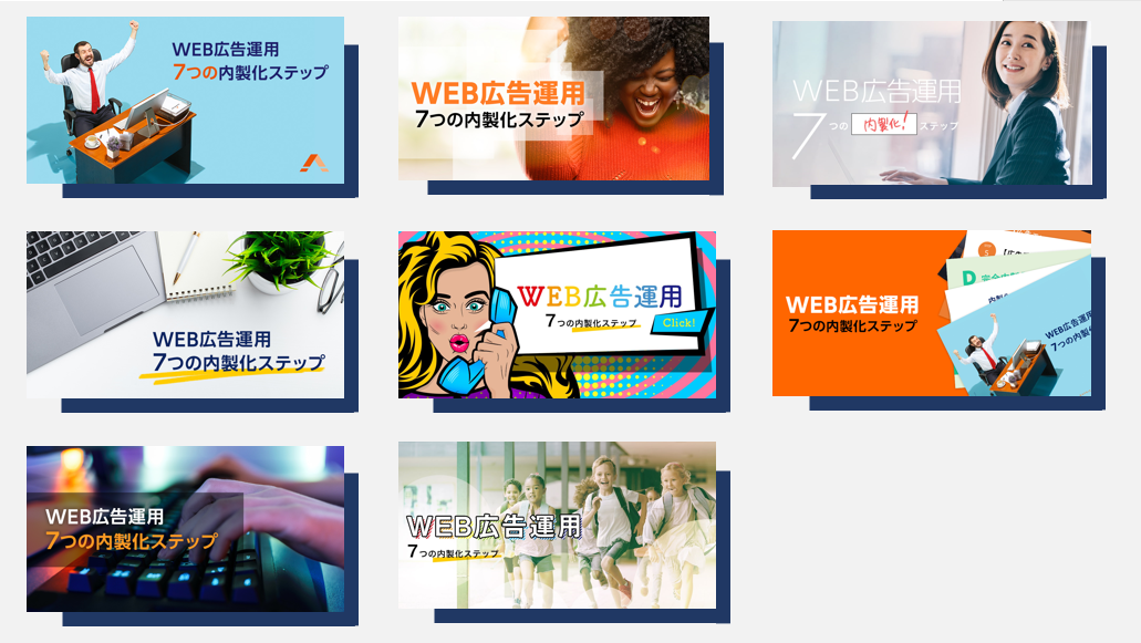 広告運用者が作成されたすべてのバナー(下図)を広告でテストして、結果を共有しました。
