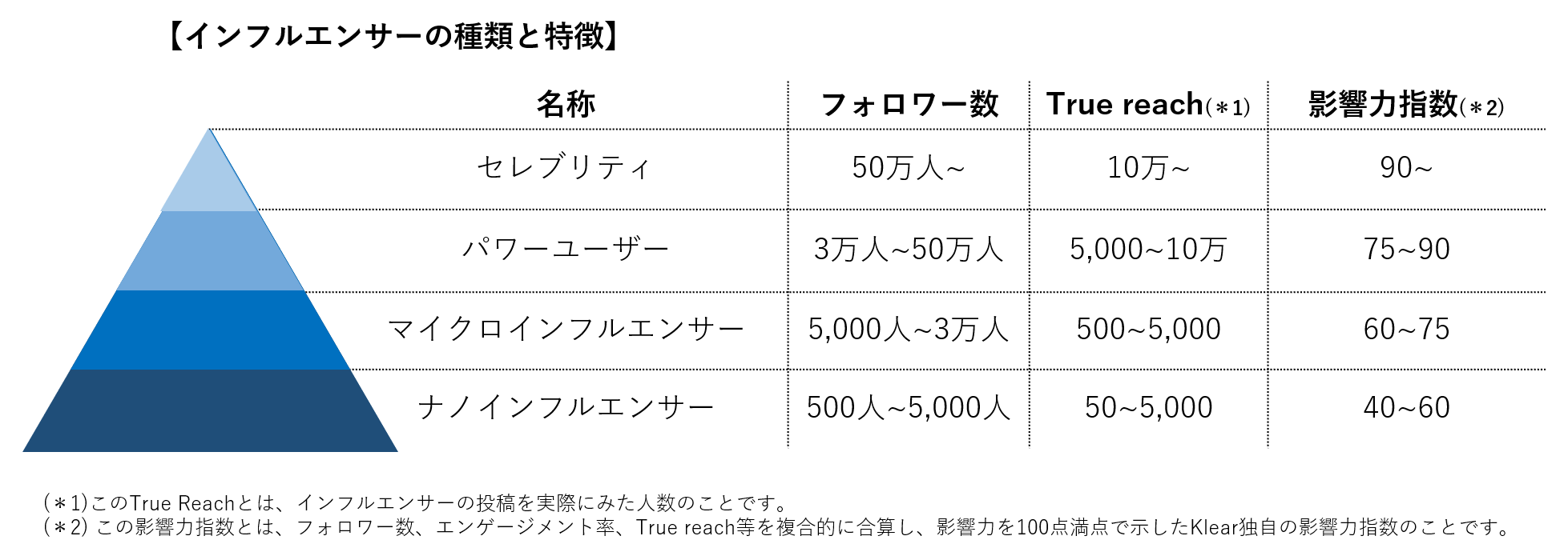 ナノインフルエンサー・マイクロインフルエンサーの定義