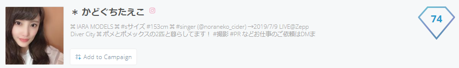 Klearスコア74と、マイクロインフルエンサーの中でもパワーユーザーに近い影響力をお持ちです。