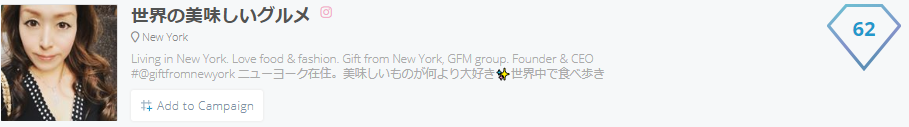 Klearスコア64、ニューヨーク在住のマイクロインフルエンサーさんです。
