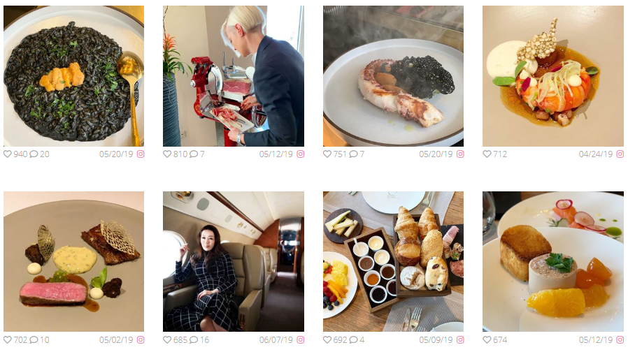 海外と日本での食事を投稿されており日本でお食事をされる際は#東カレ倶楽部も利用されているようです。