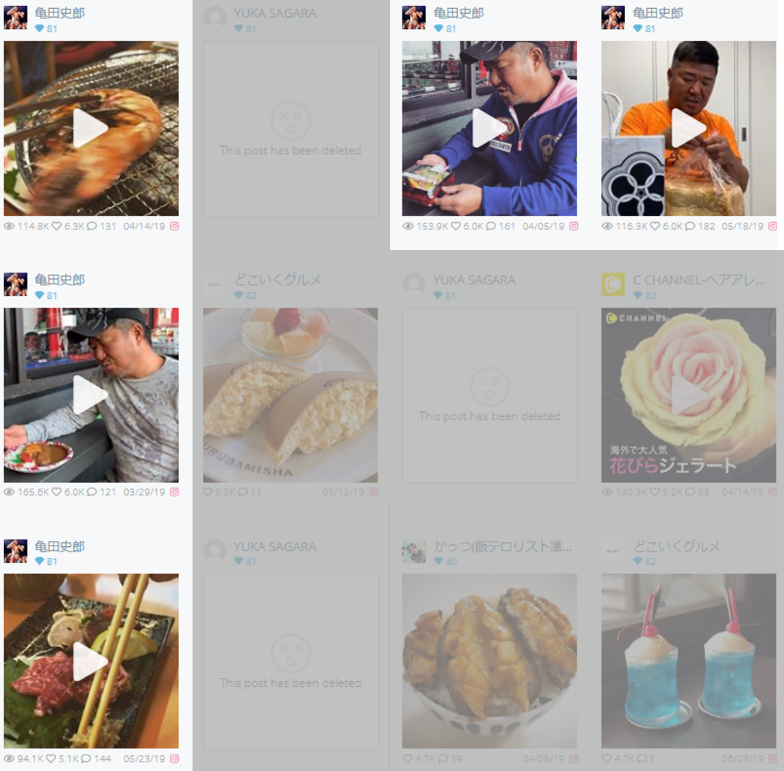亀田三兄弟の父、亀田史郎さんが#食テロの人気投稿に多々出現!Klearスコア81とパワーユーザーです。
