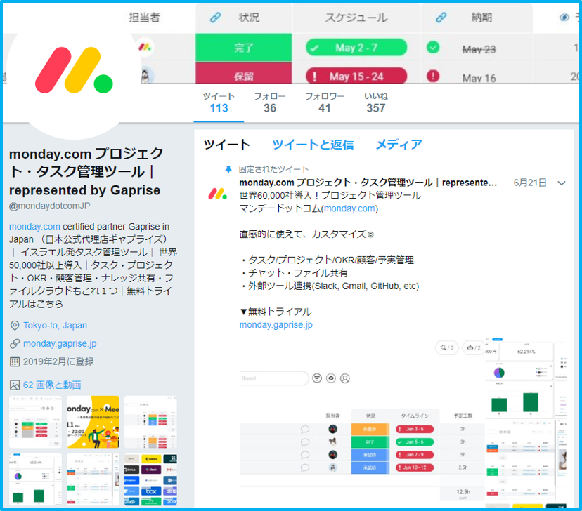 ギャプライズにて運用しているツールの公式アカウント@mondaydotcomJP