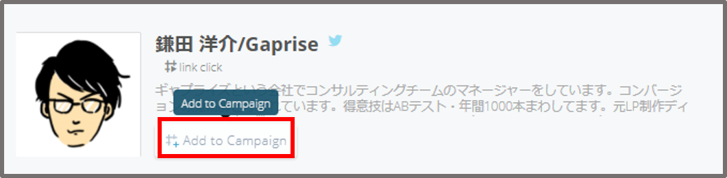 ①KlearのProfile機能から、アカウントをCampaignリストに追加します。