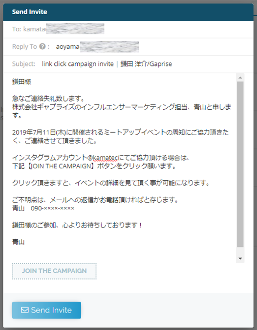 招待機能について詳しくはこちらをご確認ください。ツールを使ってインフルエンサーをイベントに招待する