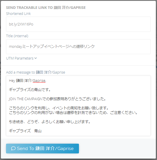 生成したリンクをメールで送信します。