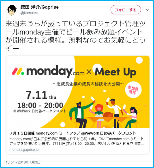 イベント名:monday.comミートアップ