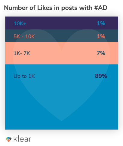 89%が1,000以下の「いいね!」を受け取っており、コンテンツがマイクロインフルエンサーから発信されたものであることがわかります。