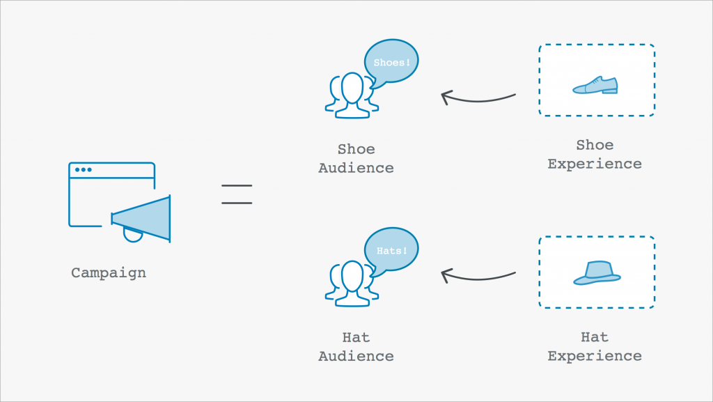 例えば、とあるECサイトで以前のブラウズ履歴・行動履歴をもとに”靴の購入者”には靴のコンテンツを、”帽子の購入者”には帽子のコンテンツを表示されるなどの、パーソナライズしたキャンペーンを行うことができます。