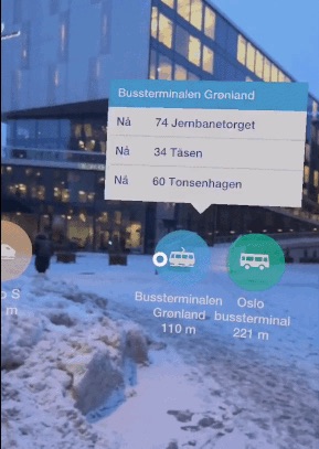 例えば、ノルウェーの公共交通システムでは、バスの停車駅やルート・距離などを、スマートフォンを道路に向けるだけで確認することができます。