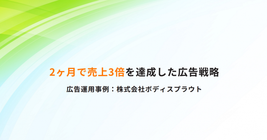 本レポートでは、2か月で売上3倍を達成した株式会社ボディスプラウト様の広告運用戦略、SNS広告にフォーカスした広告運用事例をご紹介いたします。